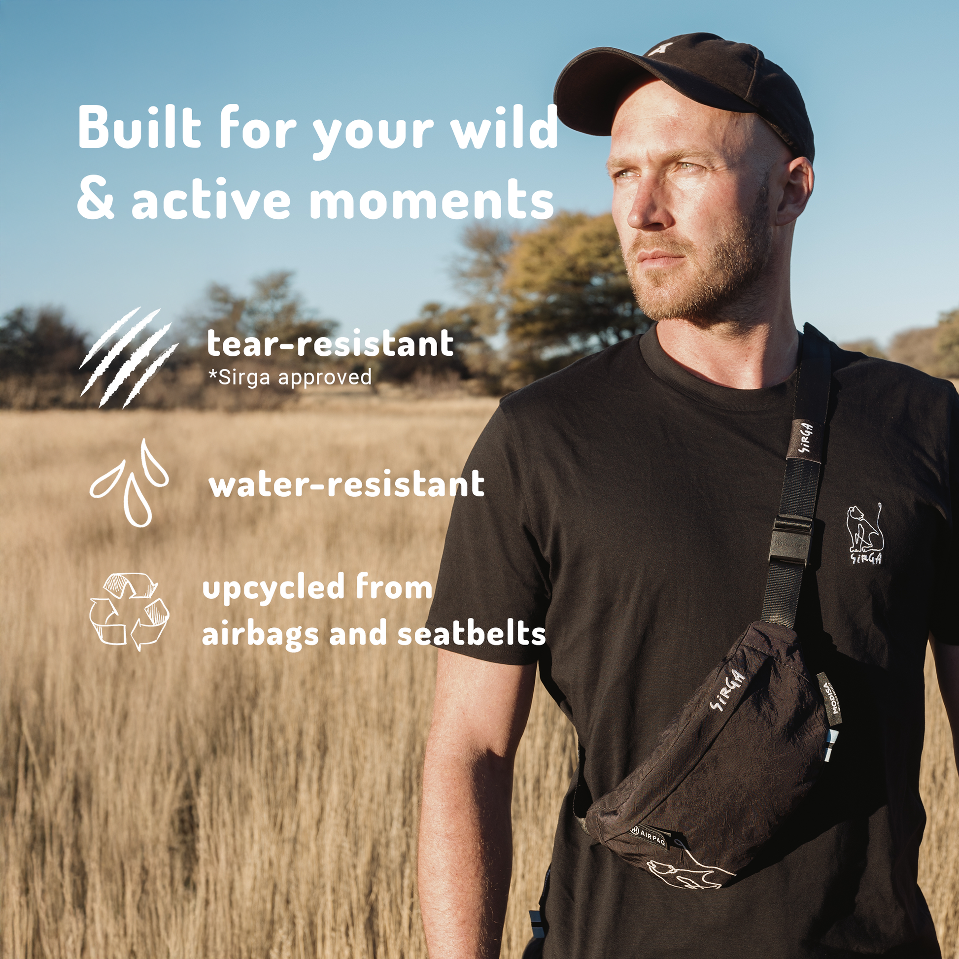 At the Modisa Wildlife Project, Valentin works with local communities to manage 170 km² of protected land in the Kalahari. The approach is holistic: conservation, education, employment. To fund this work, we've created something meaningful – a limited collection of bags made from upcycled airbags and seatbelts. Every bag supports Modisa directly – no middlemen, no overhead.