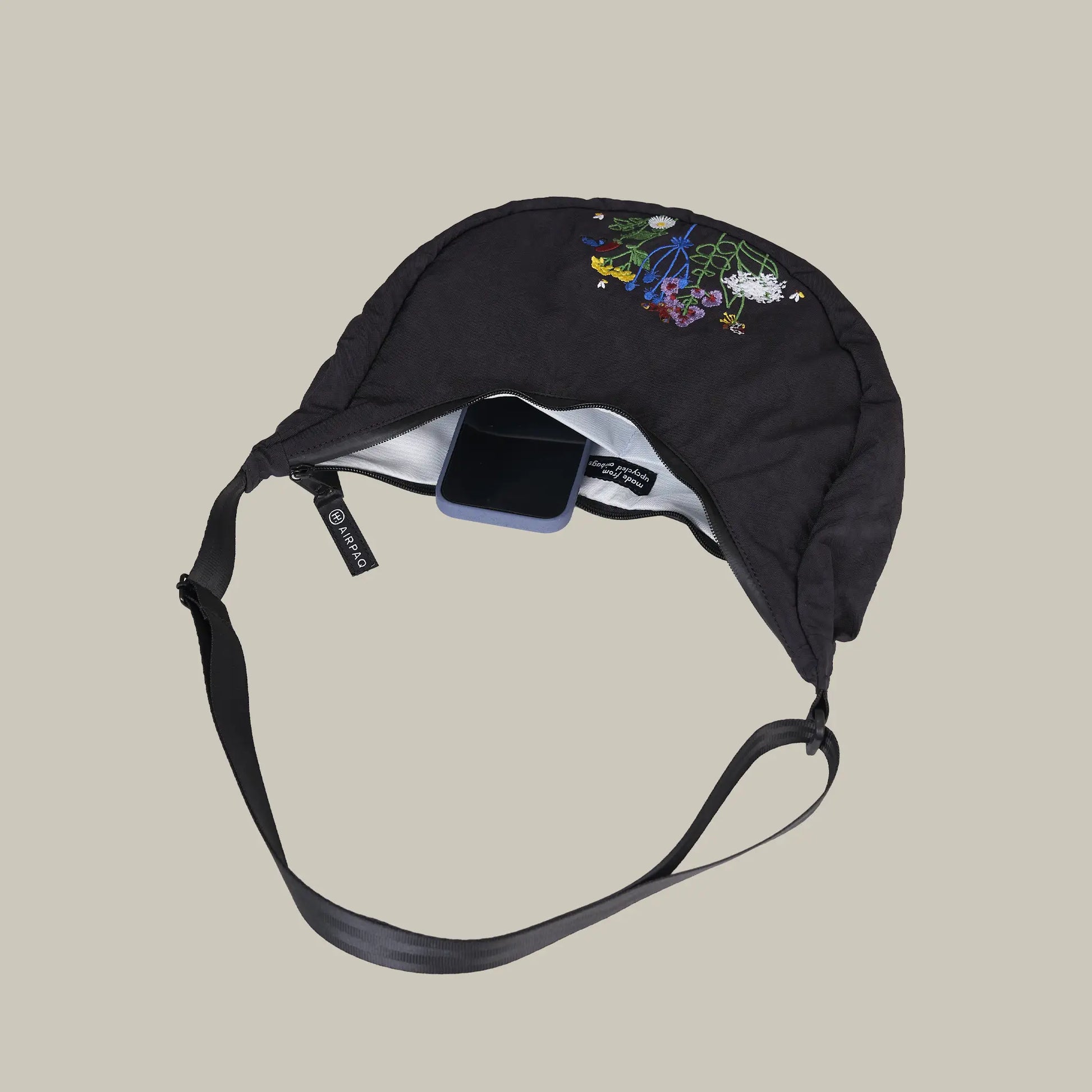 3L Halbmondtasche aus upgecycelten Airbags • Im Design der Robinga-Sonderedition Pflanzen die ich liebe
